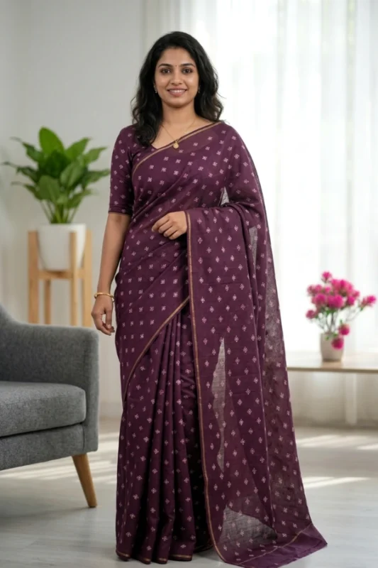 Premium natural linen with a soft, breathable texture and a slightly crisp feel. The fabric offers a graceful drape that adds elegance to any outfit.
