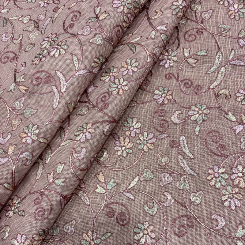 Thread Work Linen Fabric -Dusty Pink