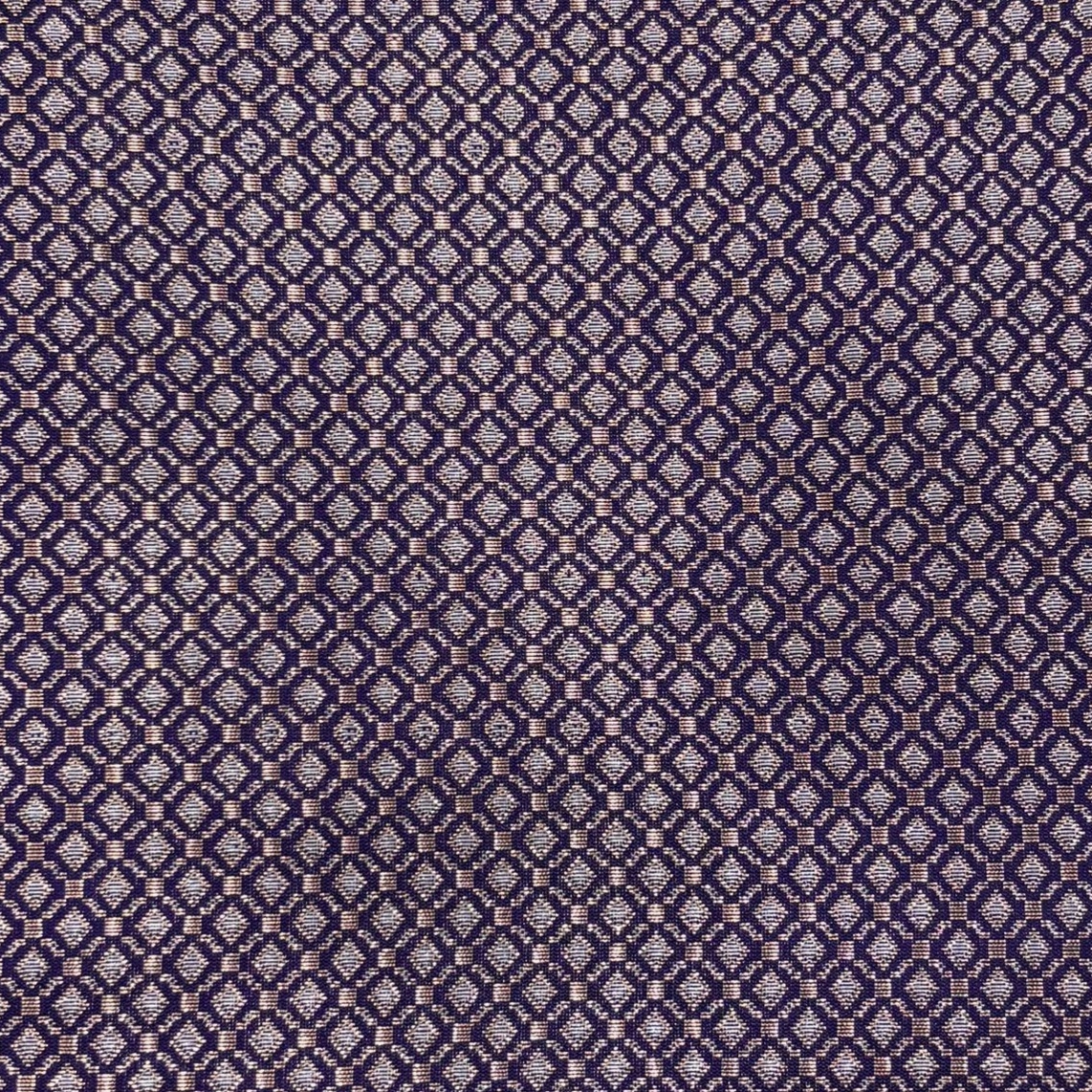 Experience timeless elegance with this luxurious Banarasi fabric crafted in a rich and regal dark plum purple shade 💜. The fabric features intricate all-over geometric weaving, beautifully enhanced with subtle silver zari work ✨, giving it a refined shimmer and premium finish.