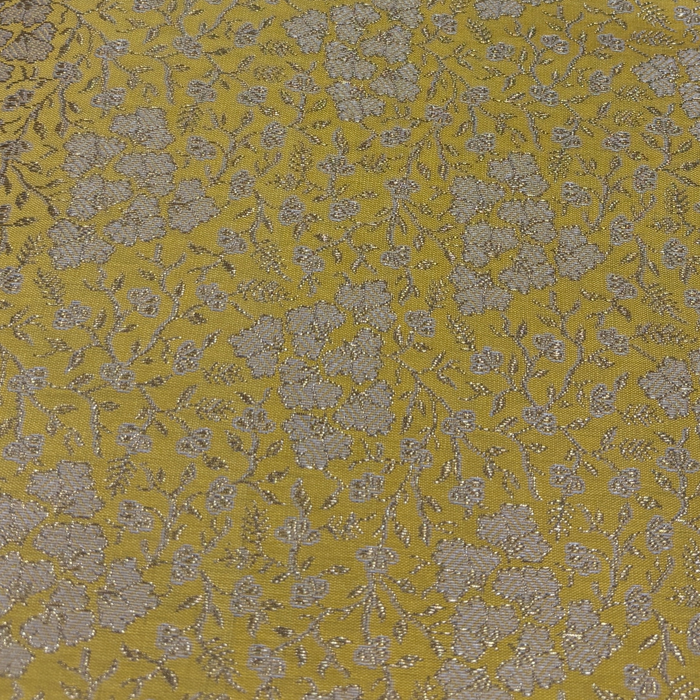 Radiate elegance with this rich golden yellow fabric, beautifully adorned with delicate all-over silver floral zari weaving 🌼