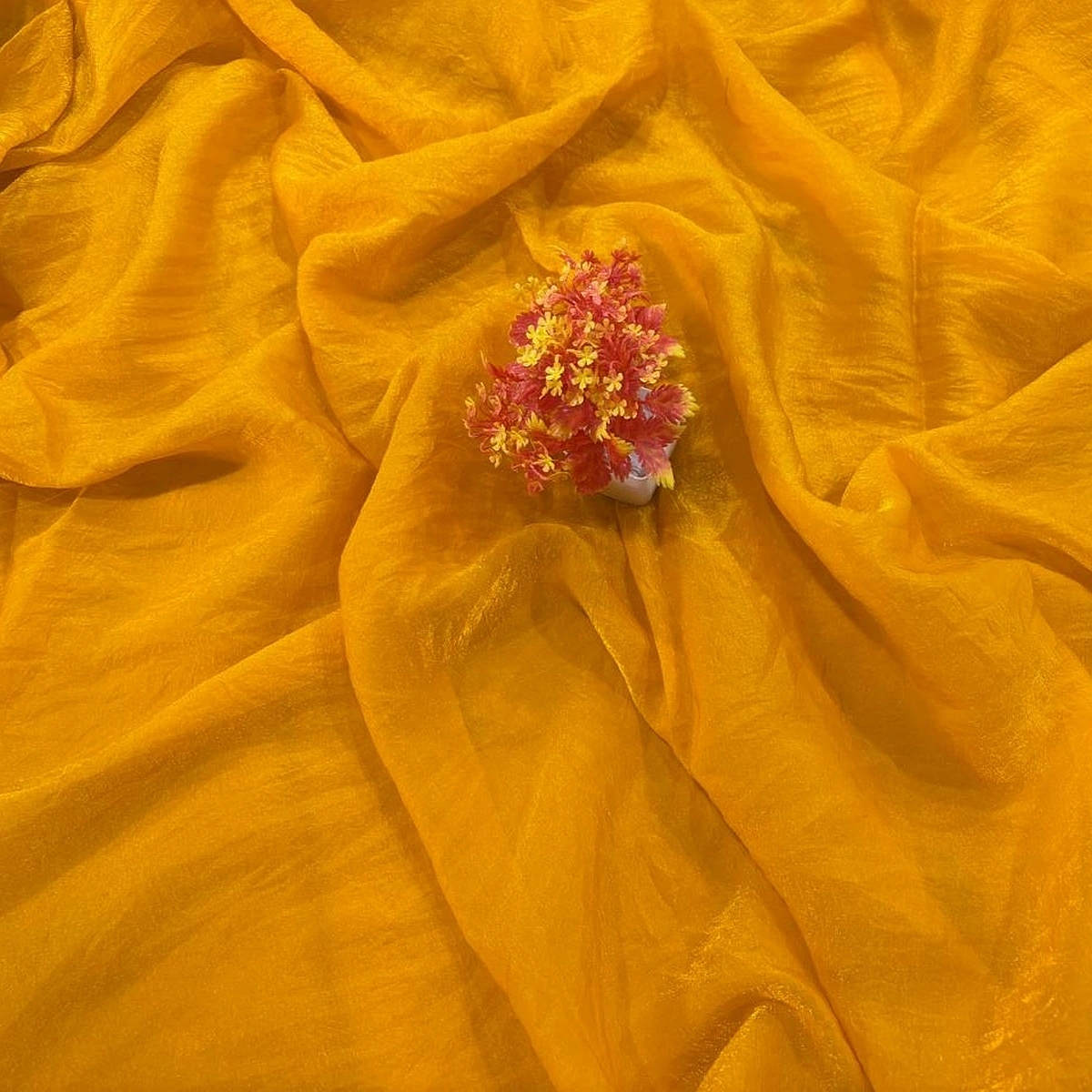 Vibrant yellow Crush Fendy Silk Fabric 💛 with a soft glowing shimmer ✨ that adds a bright and festive charm.