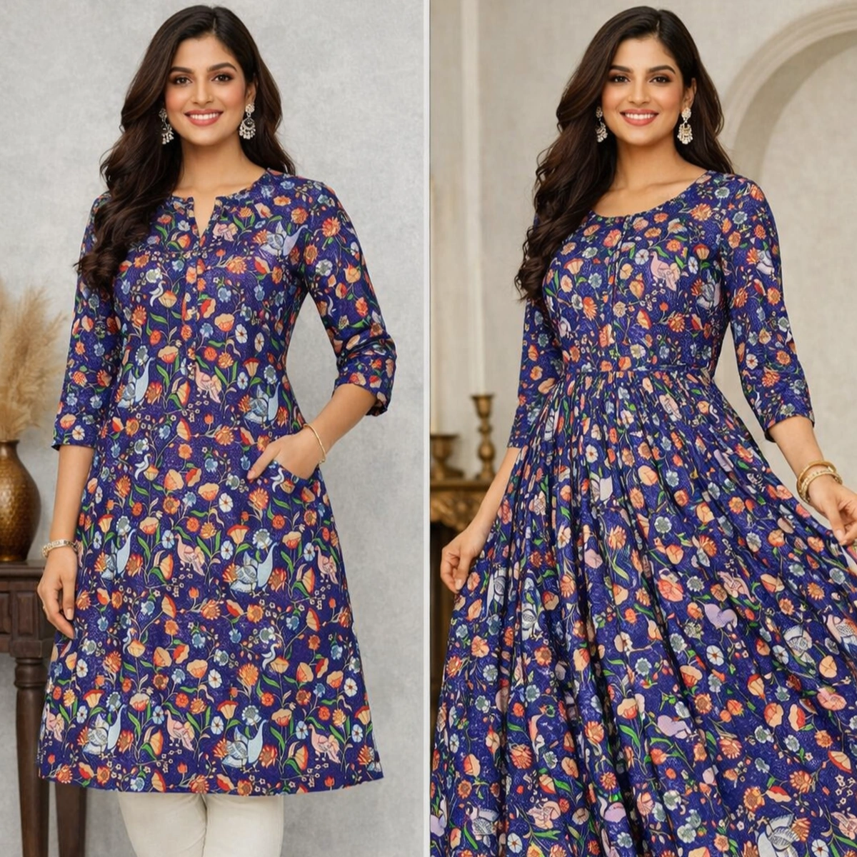 Base Colour : The primary background colour of the fabric is a deep indigo blue.
