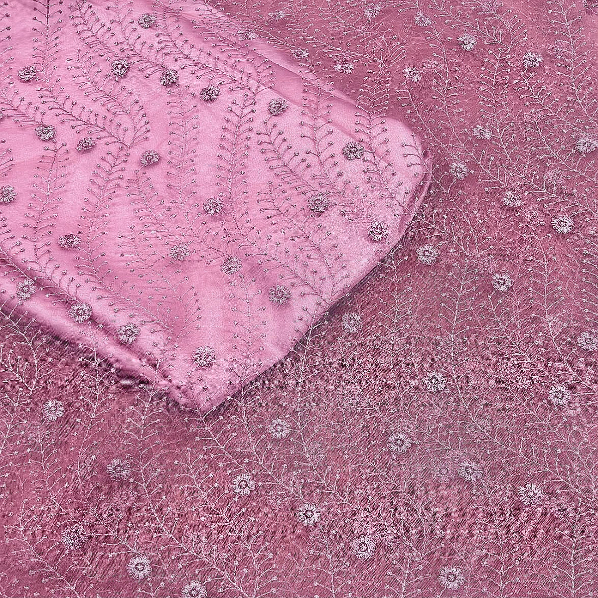 Floral Embroidery Net Fabric – Dusty Rose Pink