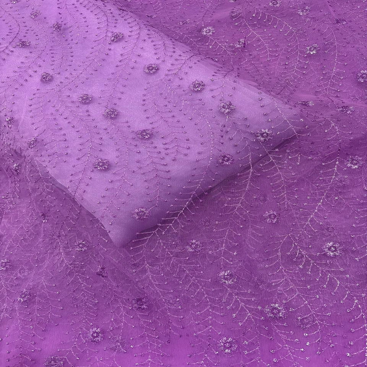 Floral Embroidery Net Fabric – Purple