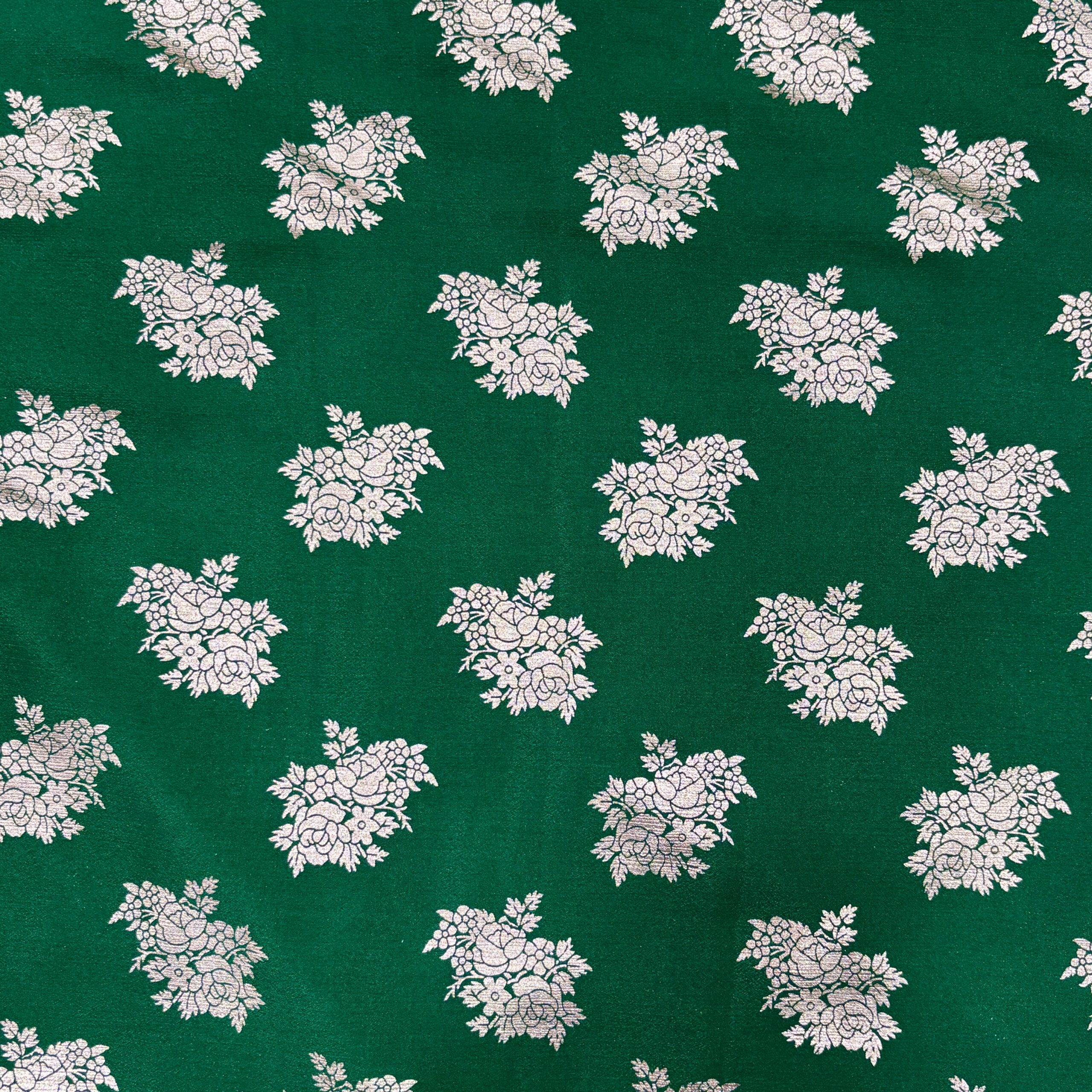 This fabric features a deep forest green base paired with subtle contrast printed motifs that enhance its beauty with a refined finish.