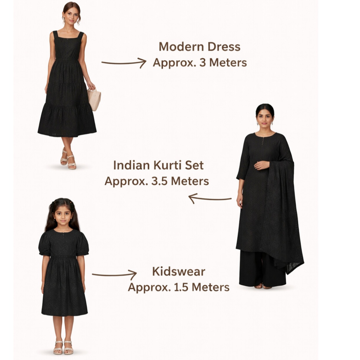 Add timeless elegance to your collection with this premium Hakoba fabric crafted in a rich deep black shade 🖤. Designed with intricate cutwork (eyelet) embroidery 🌸, this fabric offers a perfect blend of tradition and modern style.